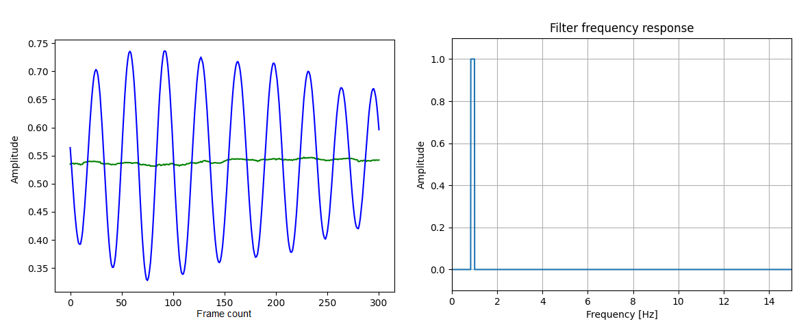 Bellow are the amplified signal and the bandpass filter used for the "face.mp4" video.