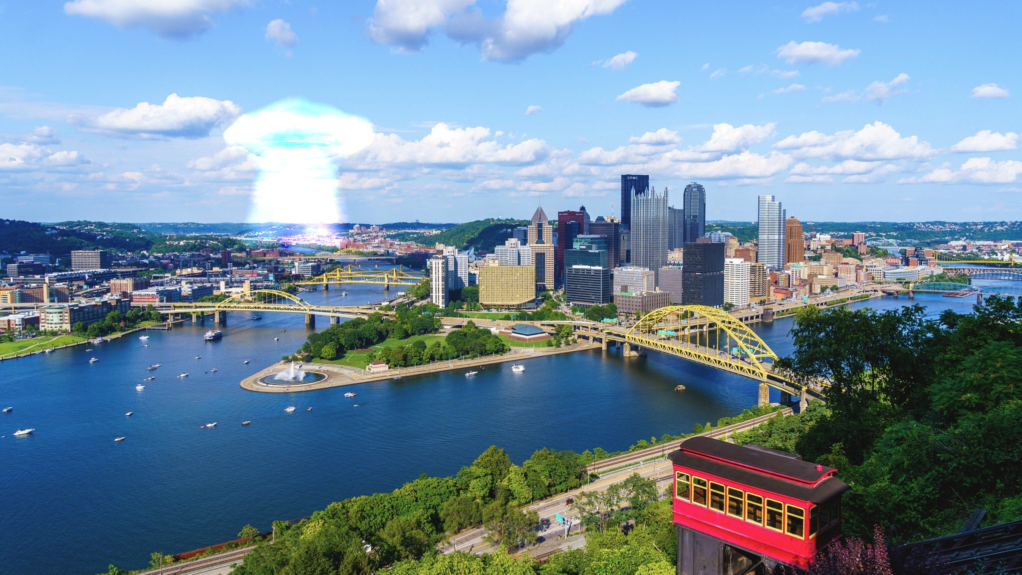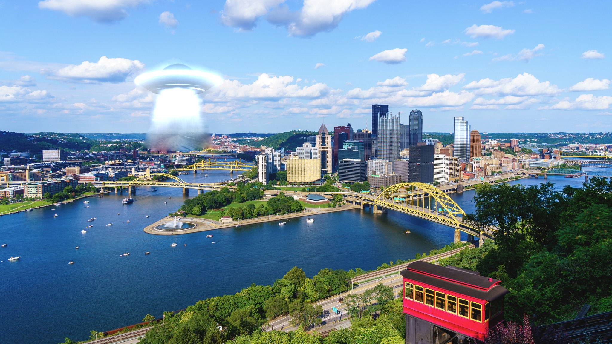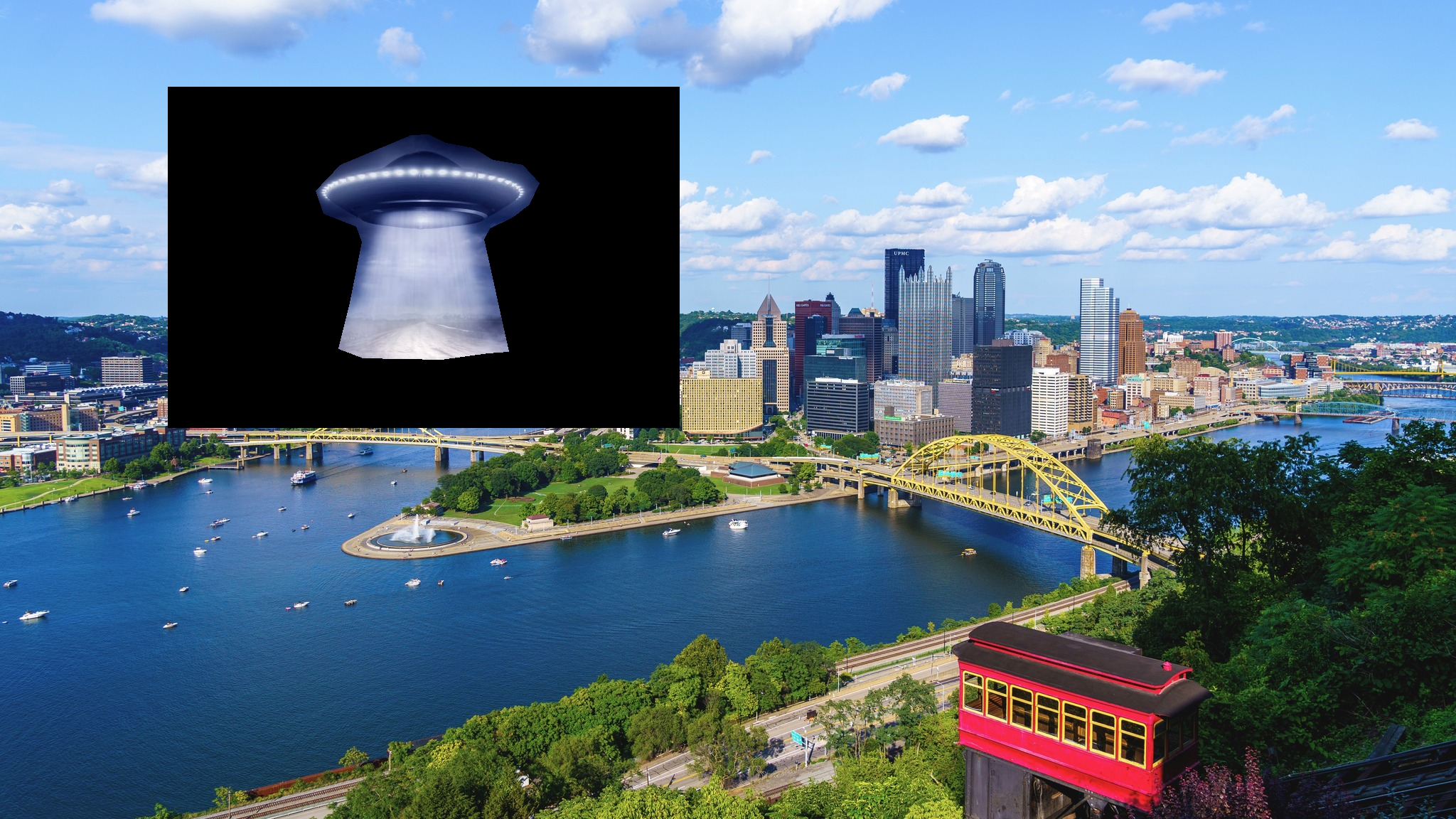 The first example is a blending example of a UFO over a city skyline. Notice that the source image (UFO) is from a dark background with low contrast. Thus, the UFO is bright and hard to detect, just like how you would see one in daylight. However, the dirt road under the UFO beam covers the original background. Using mixed gradient resolves this issue and properly shows the city under the beam of light. However, the UFO becomes even more fainter as it looses texture.